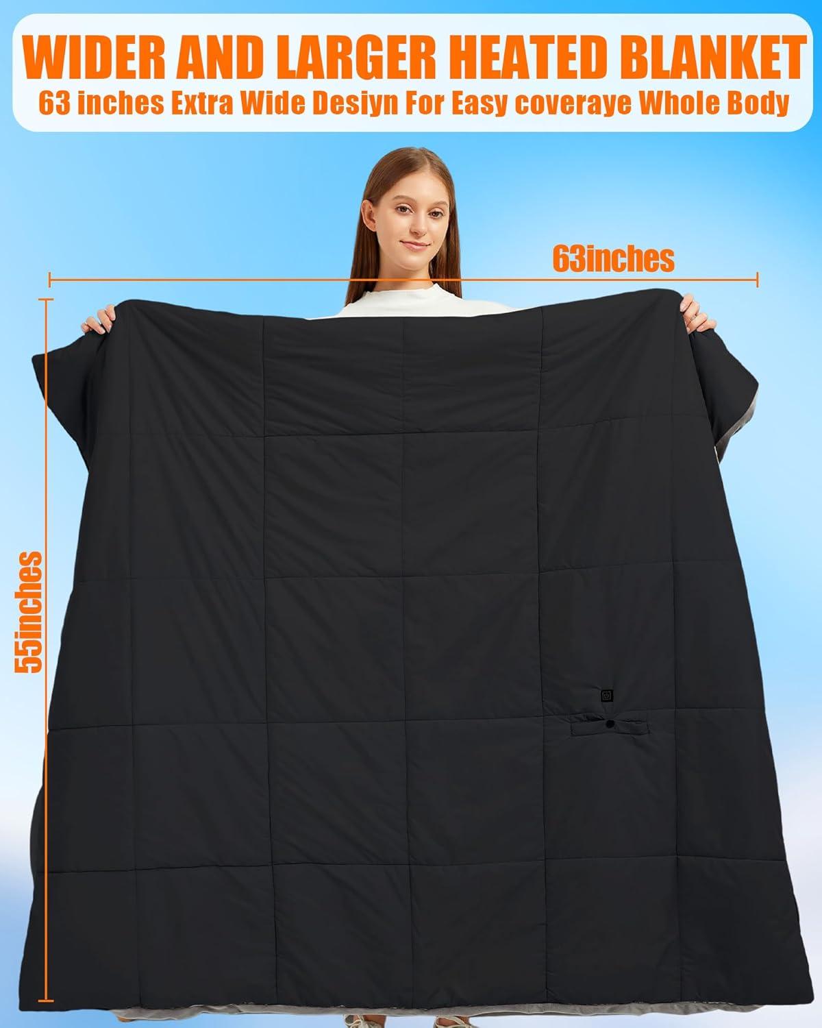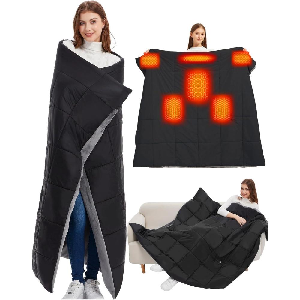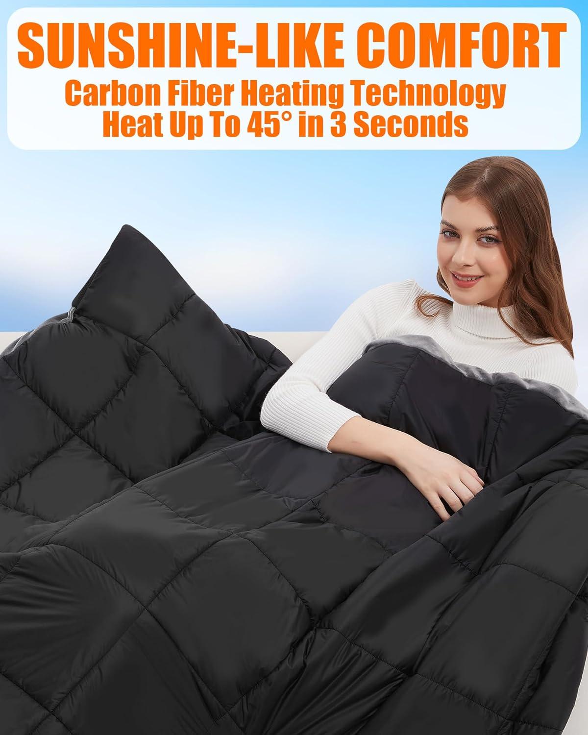 【Full Lower Whole Warmth — Even in the Deepest Cold】This heating blanket is made with high quality carbon fiber heating elements that are cleverly distributed around your neck, back, waist and hands, precisely targeting your core and providing warmth where you need it most. Whether you're walking outdoors, camping, or stadium outdoors, this blanket heats up in seconds and provides customizable comfort for any winter condition.