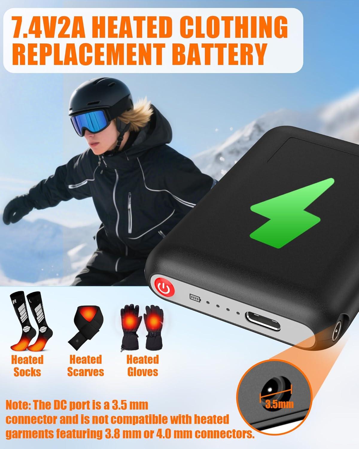 3.7V2A 4000mAh Battery Pack DC Port with Temperature Controlfor Heated Gloves Scarf Socks and Heating Slippers(1 Pc – 5V2A DC Port 6000mAh)
