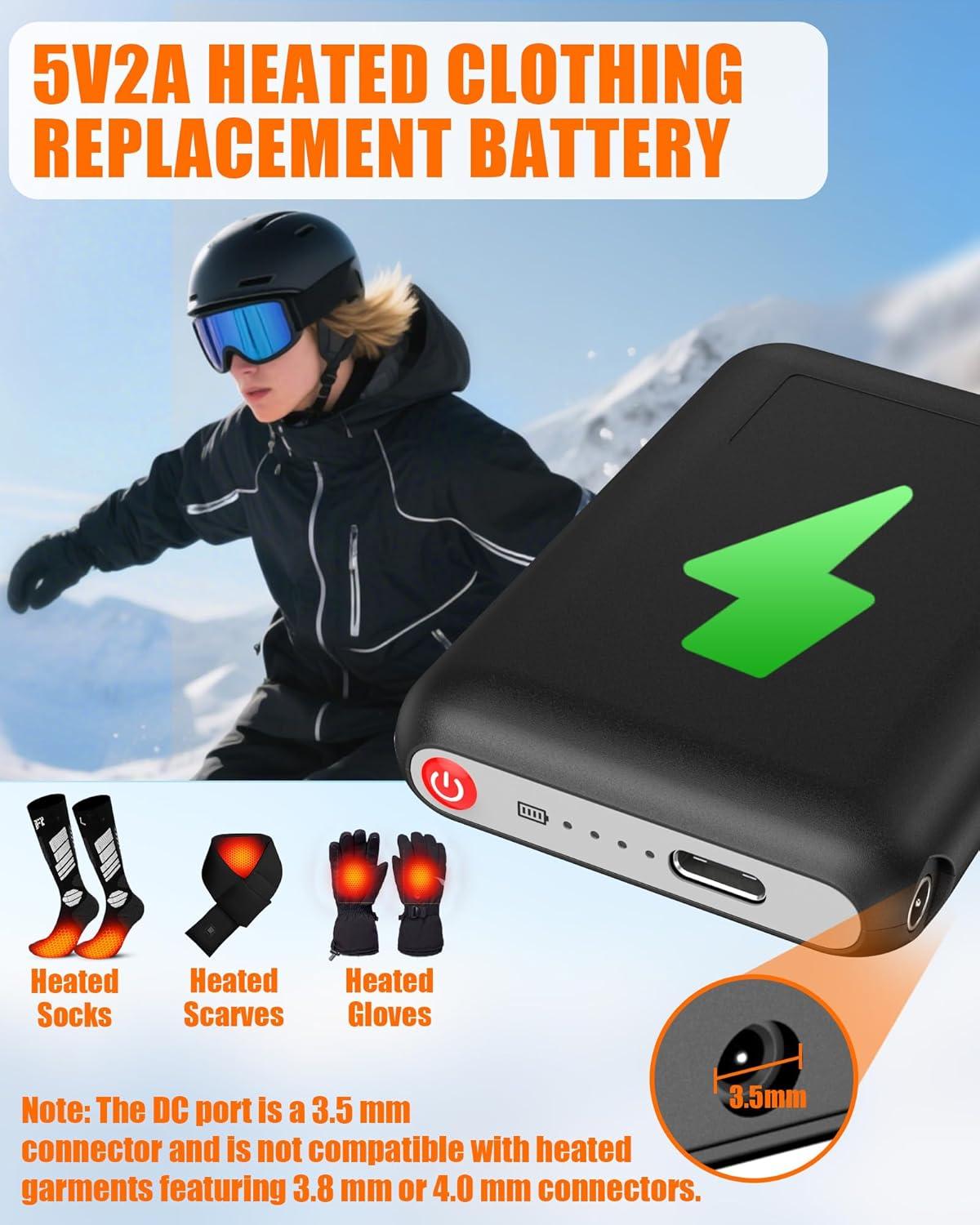 image37V2A 4000mAh Battery Pack DC Port with Temperature Controlfor Heated Gloves Scarf Socks and Heating Slippers2 Pcs  5V2A DC Port 5000mAh