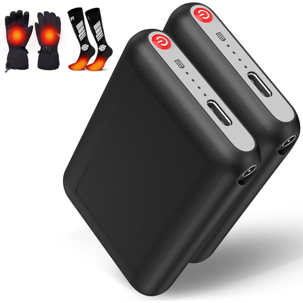 3.7V2A 4000mAh Battery Pack DC Port with Temperature Controlfor Heated Gloves Scarf Socks and Heating Slippers(2 Pcs – 5V2A DC Port 5000mAh)
