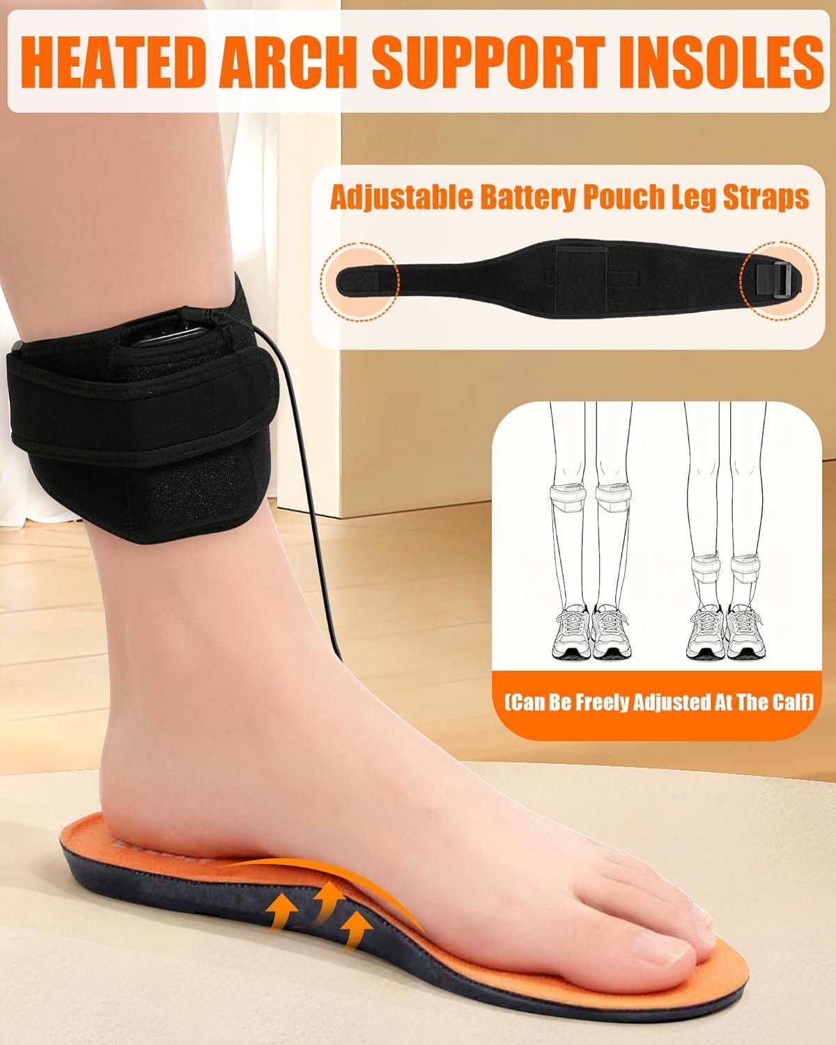 【Warm And Cozy Heated Insole】: Discover the ultimate in warmth and comfort with our heated insole. Designed with 3 adjustable heat settings, it delivers consistent heat to keep your feet snug and cozy. Perfect for chilly weather, this insole is ideal for indoor activities like working at the desk, lounging on the sofa, and relaxing at home. Powered by a 4000mAh battery, enjoy 5 to 10 hours of continuous warmth. Note: Not for intense outdoor sports like long-distance hiking