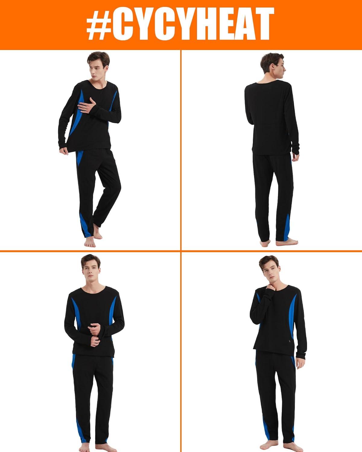 Heated Underwear - Women and Men Elastic Heated Thermal Underwear Pants Set, Upgraded 7.4V 2PCS Battery Pack(Men's Black + Blue)