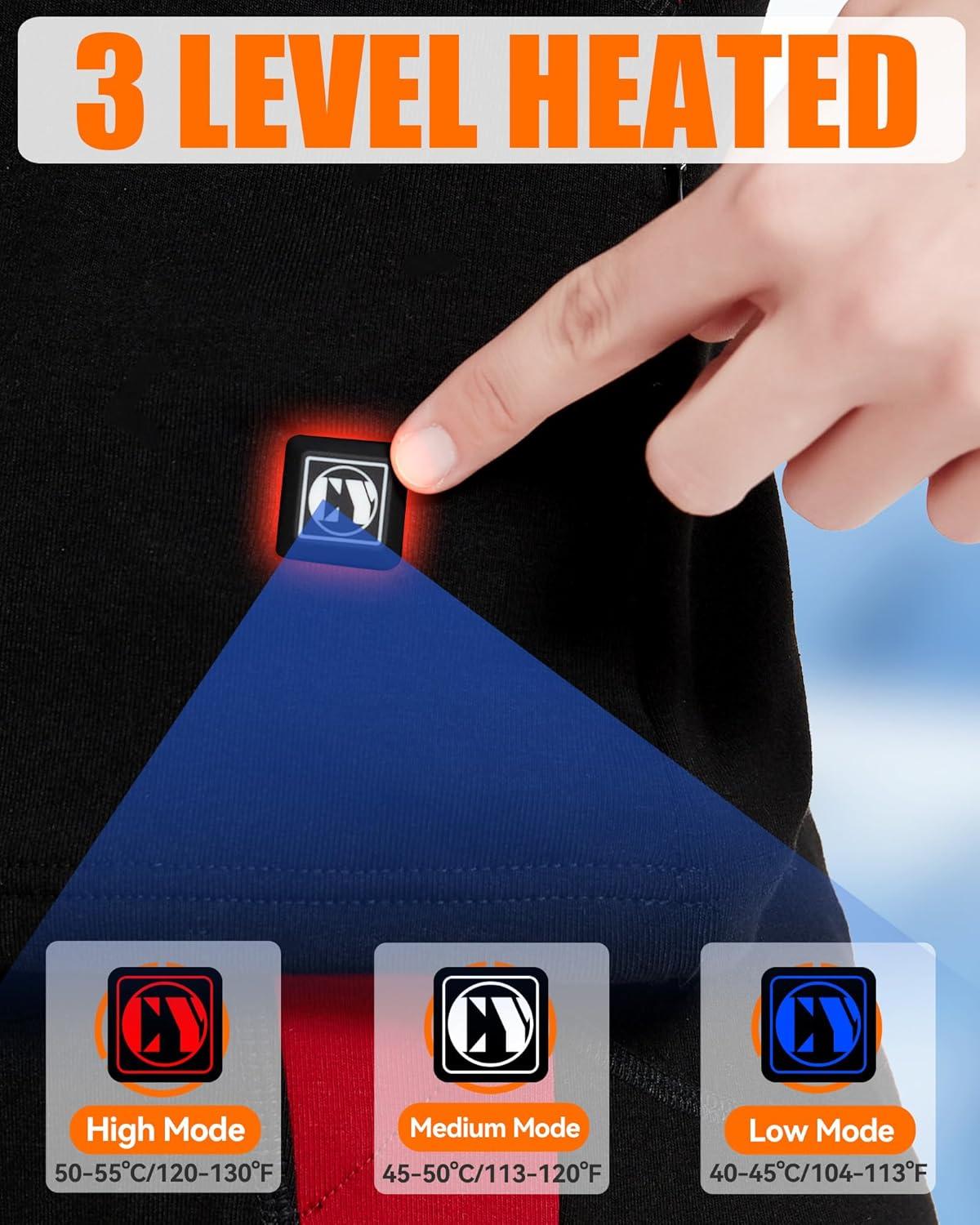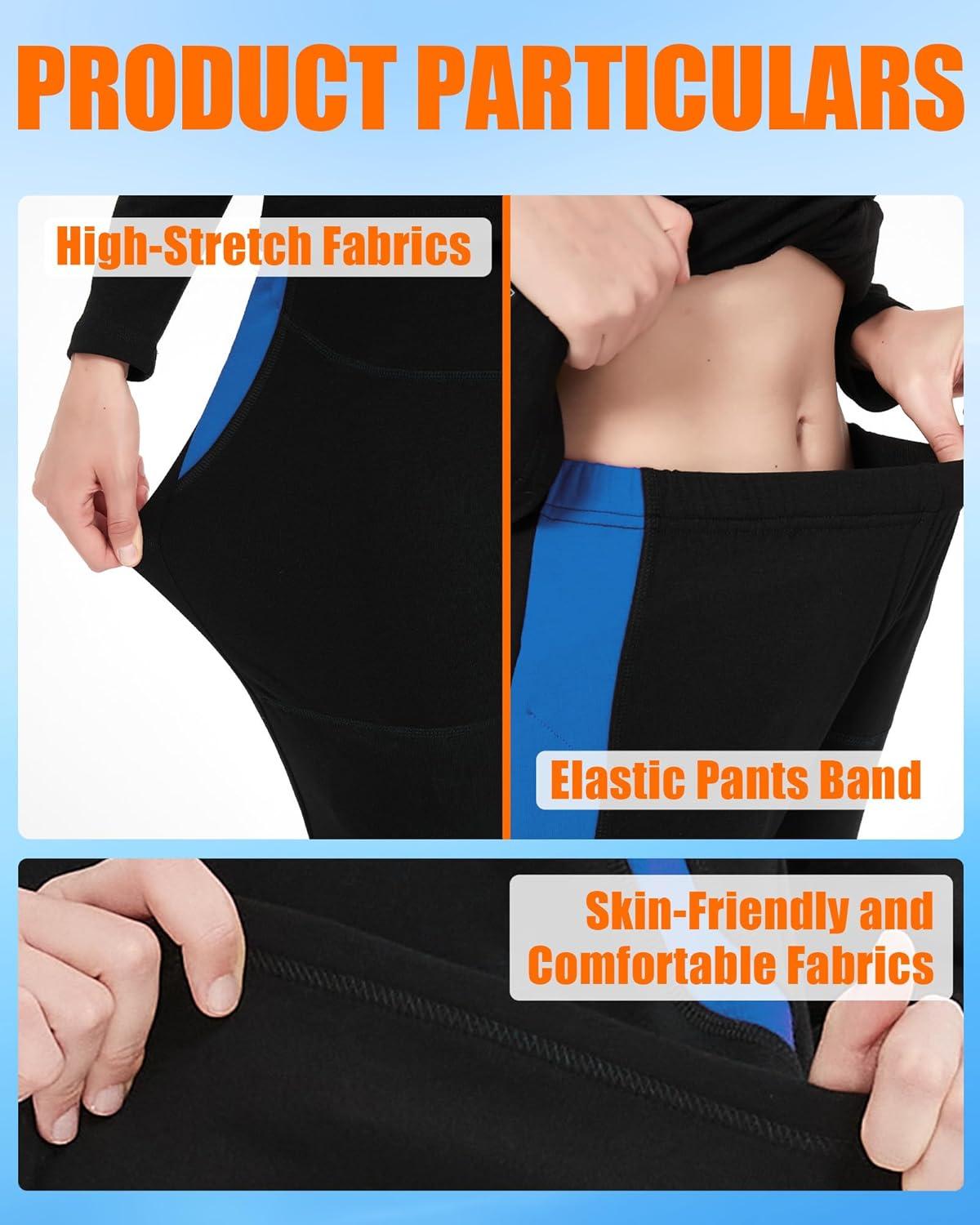 Heated Underwear – Women and Men Elastic Heated Thermal Underwear Pants Set, Upgraded 7.4V 2PCS Battery Pack(Men’s Black + Blue)